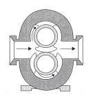 • LOBE PUMP: a positive pump. Per rotation a certain volume is being pumped. The pressure is relatively low. Applicable both for low and high viscous flow, even when the fluid contains solid particles.