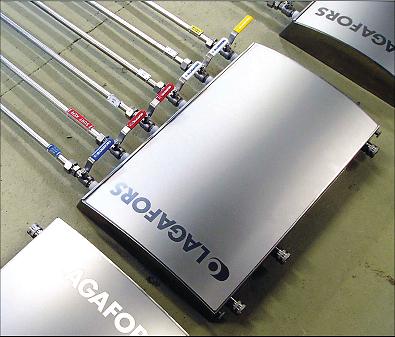 On April 15 Lagafors launched its innovative satellite station VMS-T, the only satellite in the industry which can handle up to three different chemical solutions from a central dosing unit, at the same time.The variable media satellite station VMS-T is a hygienically designed satellite station made in stainless steel for water rinse, foam application and disinfection. Developed mainly to satisfy the needs of the meat industry, the great advantage with the VMS-T is that it is a all-in-one unit, which gives the possibility of using up to three different chemical solutions at the same time. E.g. the satellite station manages contemporaneously both alkaline chemicals and acid chemicals in parallel outlets without having to clean the unit when changing from one kind of solution to the other. This option represents a truly revolutionary feature both from a commodity and an operator safety point of view.