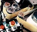 The jars are labelled by a machine. When a one head machine is used, up to 400 litre per hour can be achieved. Above this amount a bigger machine is necessary. This will be a four head, because two or three head machines don't exist.