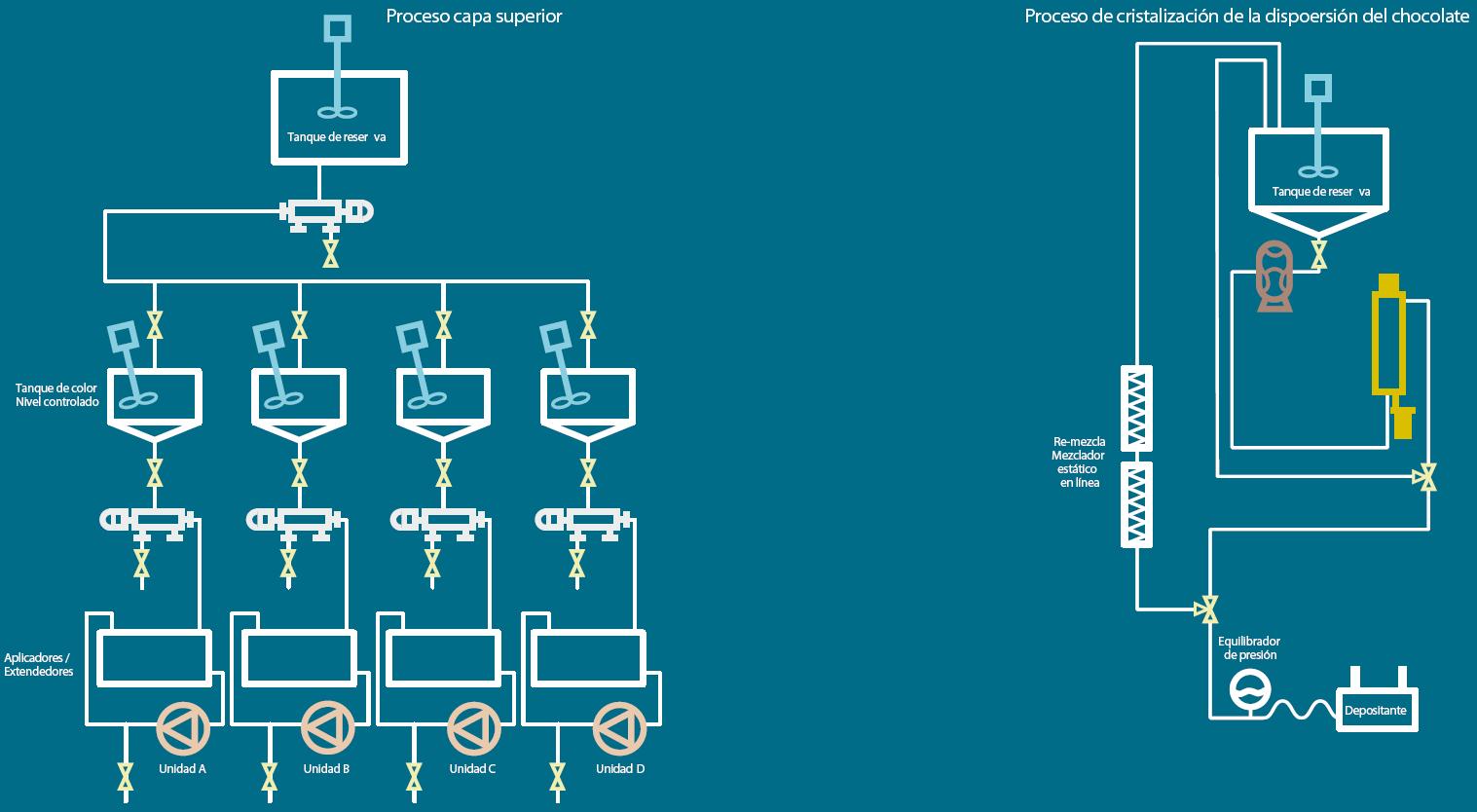 fluidity.nonstop en la producción de crema de chocolate y coberturas de 4 colores