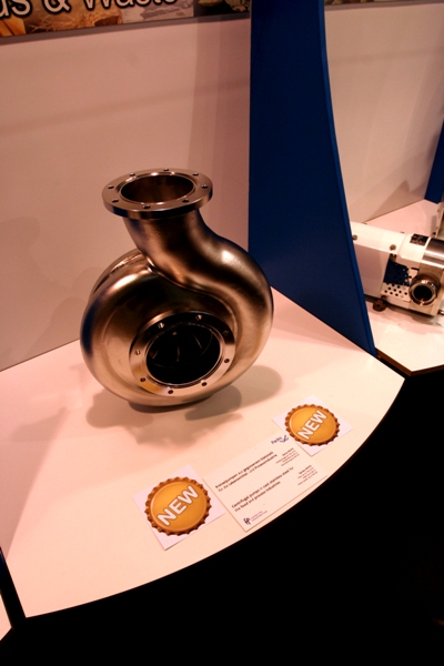 Fig. 1 shows the new centrifugal pump with its stainless steel cast spiral casing, which has an exceptionally high efficiency with a payback time on energy of less than a year.