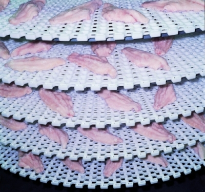 download articleLas bandas Intralox destacan entre las espirales de congelación de los mariscos