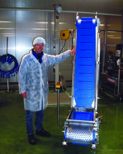 Intralox recomendó su sistema de limpieza incorporado (EZ CIP), un sistema de pulverizador diseñado para limpiar en profundidad la parte inferior de la banda, los engranajes y los ejes. En las zonas de preparación de las ensaladas, que requieren especial atención, Vezet eligió una solución del equipo de adaptación Turnkey Retrofit (TKR) de Intralox, formado por técnicos y expertos en sanidad, que instaló dos sistemas de limpieza incorporados (EZ CIP) en un elevador nuevo con engranajes en ángulo Angled EZ Clean de Intralox.