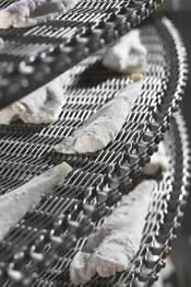 Shape-sensitive products can be placed safely on the tangential belt through a separate loading conveyor – optional with individually driven lanes. We also provide all the conveying systems needed for your spiral system.Belt options.