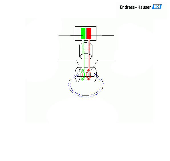 | Measuring principle: a constant applied alternating voltage U generates a magnetic alternating field around the primary coil. This induces an electric current in the liquid loop. This induced current flow through the liquid again generates a magnetic alternating field in the secondary coil. The inductive current thus produced is measured and used as a basis to calculate conductivity |