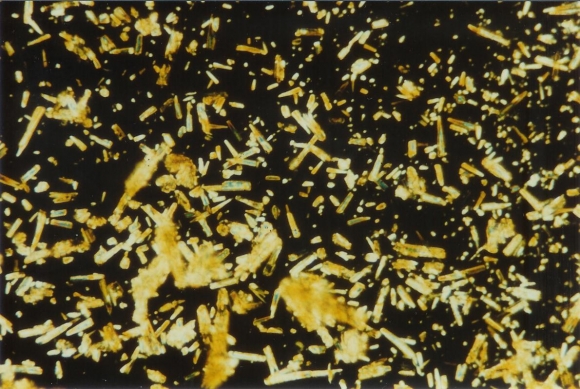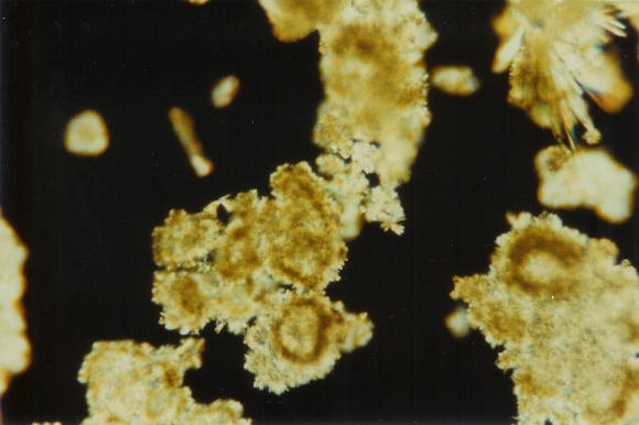 Een röntgen–diffractometrische opname werd gemaakt van de stalen ZW1 en ZW2. Beide stalen bevatten calciet (trigonaal CaCO3). Van aragoniet (orthorhombisch CaCO3) werd geen enkele reflectie teruggevonden. Daarnaast vertoonden beide diffractogrammen vier zwakke reflecties met d-afstanden van 3.35 A, 3.45 A, 3.69 A en 4.24 A (± 0.02 A). Deze reflecties konden niet geïdentificeerd worden.Microscopisch onderzoek