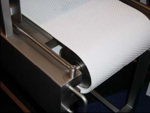 | Function | Synthetic belts mostly run straight, down or up. Must be food approved. Synthetic belts have a homogenous surface, which is easy to clean. Damaged belts lead to poor hygiene. |