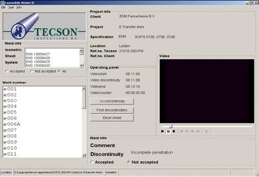 Tecson voert al meer dan 10 jaar camera-inspecties uit, de laatste jaren steeds meer in de voedingsmiddelen en farmaceutische industrie ter controle van lassen in RVS leidingwerk en procesapparatuur.