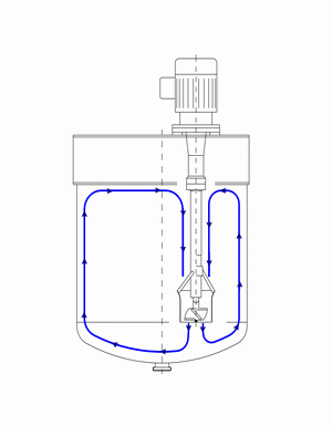 De Jetstream mixer is een ideaal instrument voor homogeen mixen en suspenderen. Een snel ronddraaiende rotor binnenin een stator creëert een verticale stroming van vloeistof die geleid wordt naar de bodem van de tank. Wanneer de ‘Jet’ de bodem raakt, verdeelt de stroom zich in twee stromingen die naar boven worden afgebogen om de hele batch te