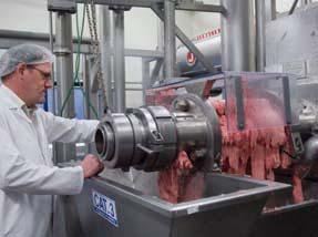 Hoe gaat het mechanisch ontbenen van vlees precies in z’n werk? Van der Craats: “Het komt erop neer dat het vlees als het ware gezeefd wordt. Het wordt onder druk gebracht met een schroefpers. Het vlees gaat door de gaatjes van de zeef, terwijl de harde delen, de botten, steeds verder naar voren worden getransporteerd tot alle vlees eraf is. West-Europa is het aanleveringsgebied voor onze grondstof. In andere delen van de wereld is de meatproductie dikwijls gekoppeld aan grote slachterijen, maar in Nederland zijn de slachterijen relatief klein en wordt de grondstof centraal verwerkt.”