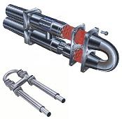 The raw cool product flows in the inner tube counter-current to the heated product which comes from the heating section and heats the cold product. Savings of over 90% of the total heating or cooling load are realized.