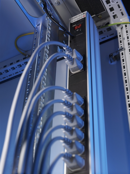 Volledige verbruikscontroleHet in de gaten houden van de vermogensgegevens van de IT-hardware is niet alleen vanwege energie-efficiëntie verstandig. Een overbelasting van de stroomvoorziening door een verbruiker bedreigt alle aangesloten apparaten in de serverkast. Daarom breidt Rittal zijn Power System Modul-assortiment (PSM) uit met een meting van de afzonderlijke stromen per contactdoos. Gekleurde LED’s tonen het verbruik van alle aangesloten verbruikers. In combinatie met het sensornetwerk CMC-TC (Computer Multi Control Top Concept) kunnen de waarden ook online worden opgevraagd.
